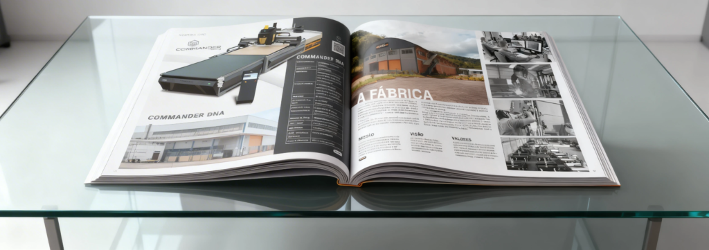 Criação de materiais institucionais e promocionais com design estratégico. Organização de informações, hierarquia visual e acabamento profissional para impressão ou digital, transmitindo valor, clareza e credibilidade.