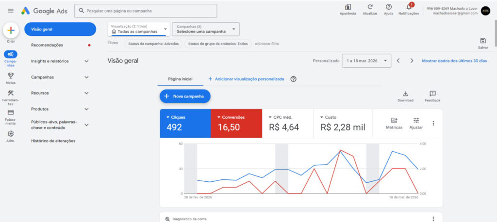 No Google Ads, minha atuação é focada em campanhas de rede de pesquisa e anúncios no YouTube. Trabalho com palavras-chave bem definidas, anúncios objetivos e campanhas estruturadas para atrair, engajar e converter, sempre com base em dados e melhoria contínua.
